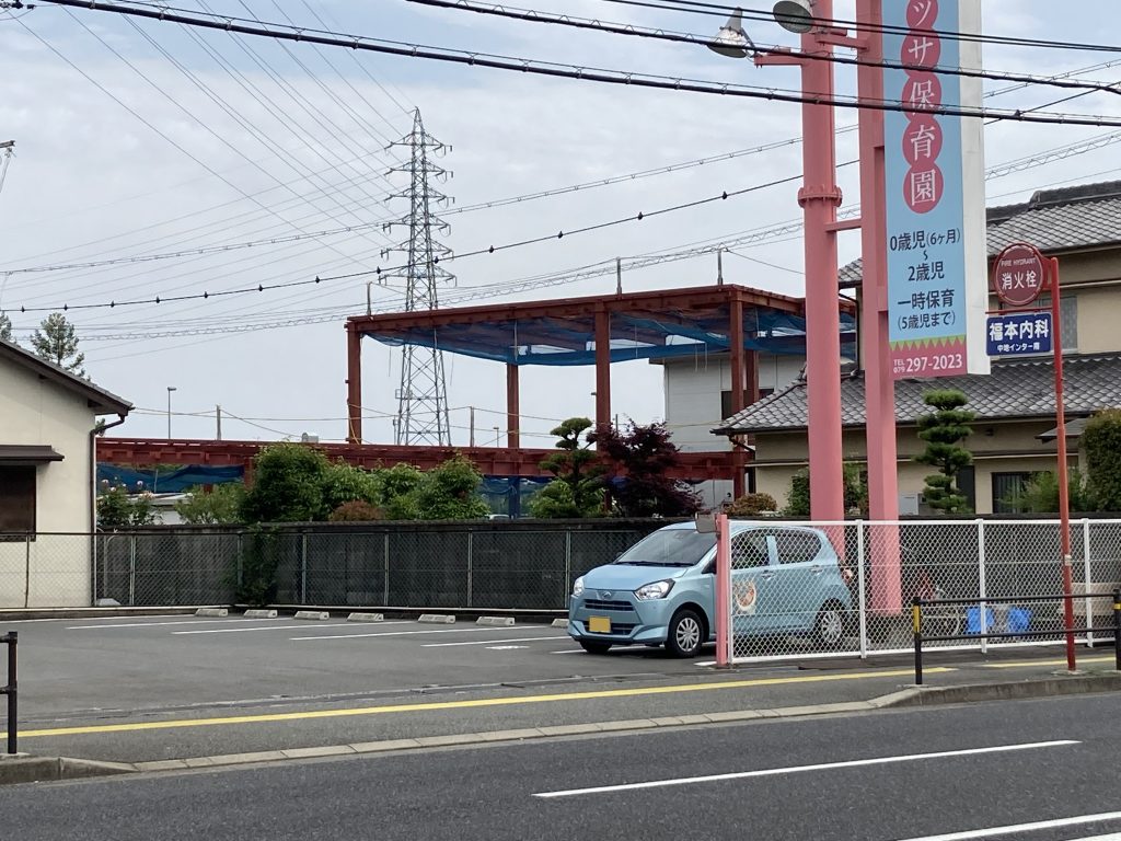 上の写真は、らぁめんたろう姫路中地店の前から東の方向(姫路フレッサ保育園駐車場)を見たところです。