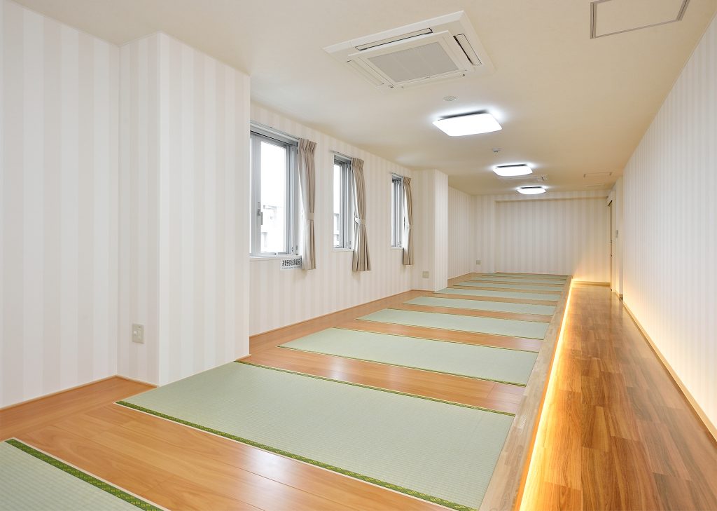 仮眠室は、薄暗くしても段差を認識しやすくデザイン性にも