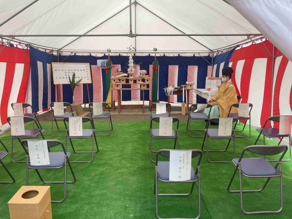 姫路市呉服町で「プライムメゾン呉服町」賃貸マンション新築工事の地鎮祭を行い、安全を祈願いたしました。
