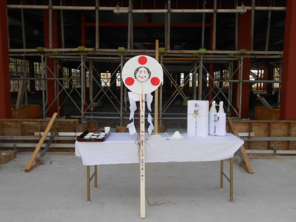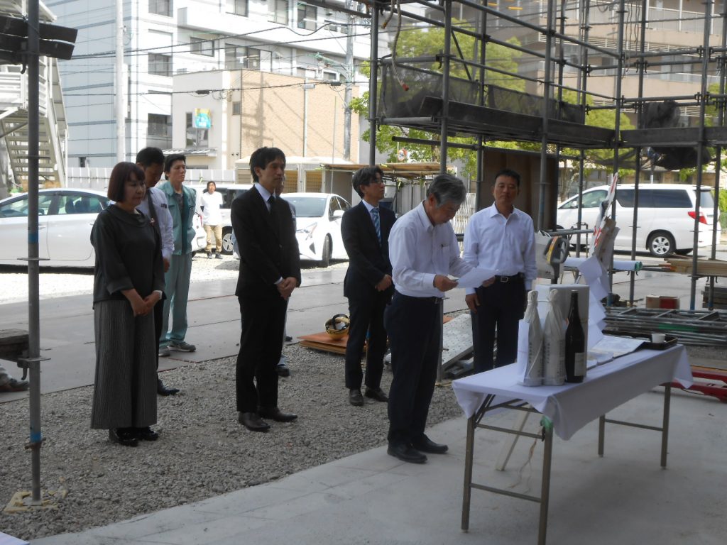 先日、私立稲美中央病院の鉄骨建方工事も終わり、上棟式が行われました。