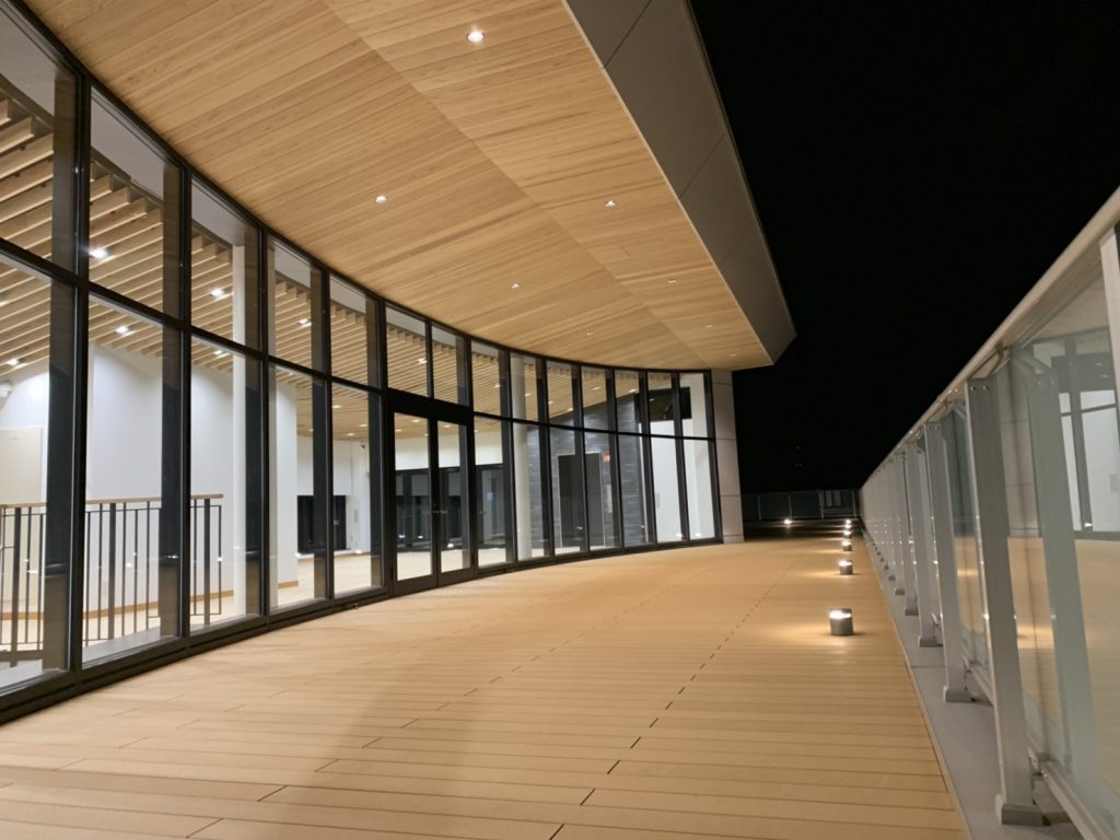また、この8月に完成する交流広場の円形に合わせて建物が多角のガラス張りになっているのも特徴的です。