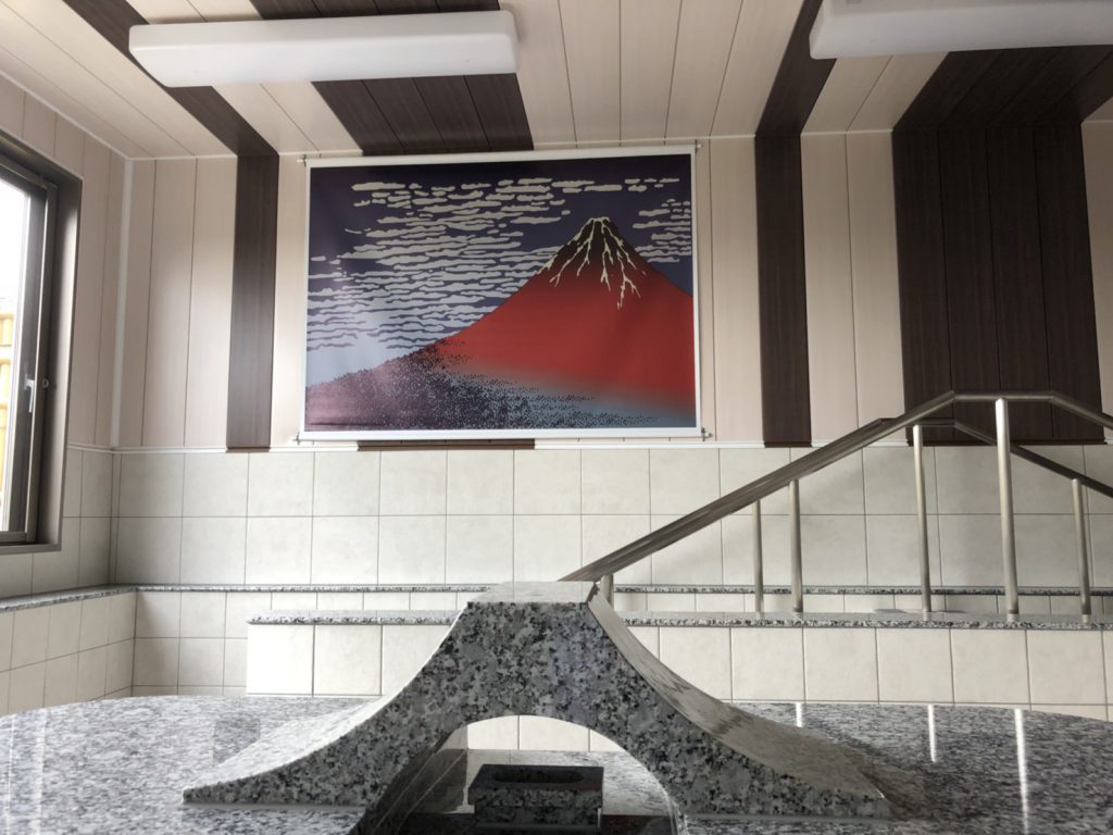 また建物竣工のお祝いとして弊社はリハビリプールに富士山(北斎の冨嶽三十六景)の
