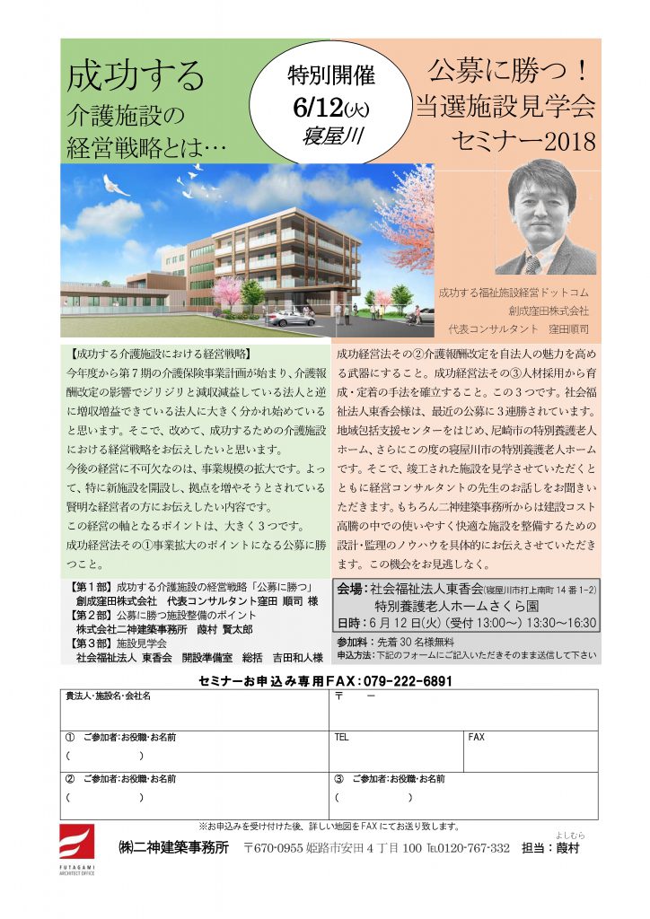 「公募に勝つ!当選施設見学会セミナー2018」を開催致します。